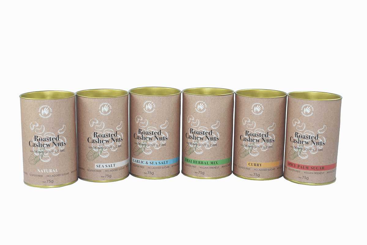 Spicy Palm Sugar: Cashew nuts, Lontar palm sugar, Chili powder, Sea salt